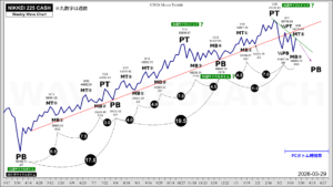 今週26304を割らずに27203を超えてくるのであれば、ひじょうに強い上昇が起こるパターンである。