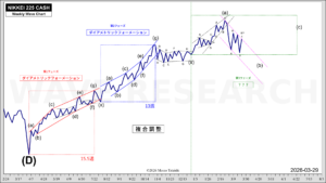 しかし今後サポートとなる「2-4ライン」をはっきりと割り込むようであれば、3月9日以来の上昇をインパルス「1-2-3-4-5」とすることには問題が生じるだろう。