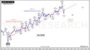 1月半ばからのこの上昇は(少なくとも日足においては)オリジナルなエリオット波動パターン(※)ではないので、波形はやや複雑だが、今後は値幅が上下に拡大傾向を見せる可能性がある。